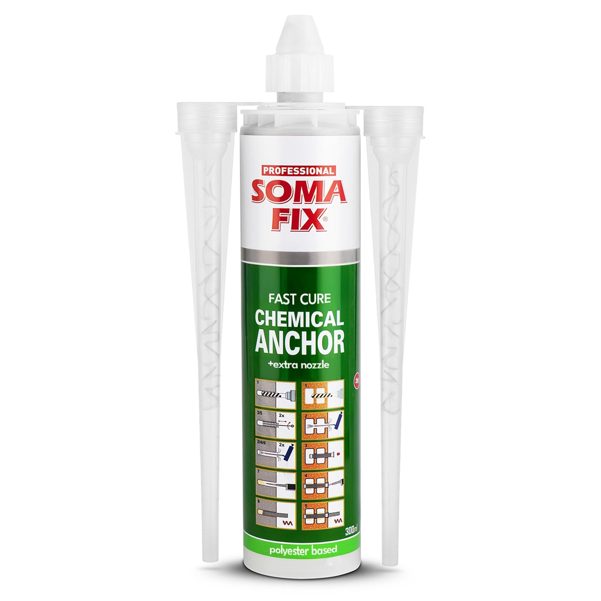 Chemical Anchor - Polyester Resin Adhesive for Brick, Concrete, Stone, Granite & Fixings - Grey Colour, Cures Rapidly + Extra Nozzle Included (300ml)
